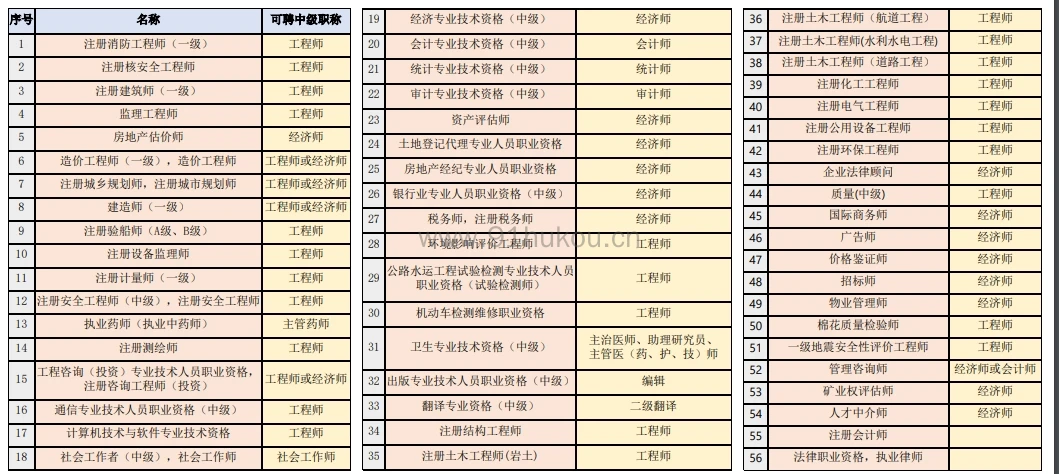 上海市人社局会定期发布《职称目录》,只有目录内的中级职称才能用于落户。比如注册建造师、注册结构工程师、中级经济师、会计师等,都是热门选择。