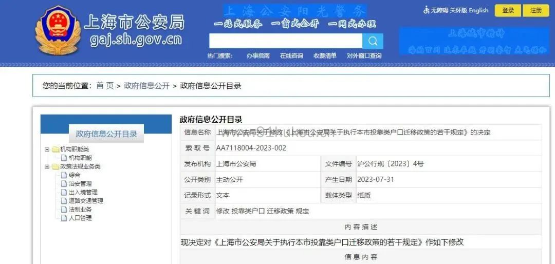 近日,上海市公安局发布了最新投靠落户政策《上海市公安局关于执行本市投靠类户口迁移政策的若干规定》!