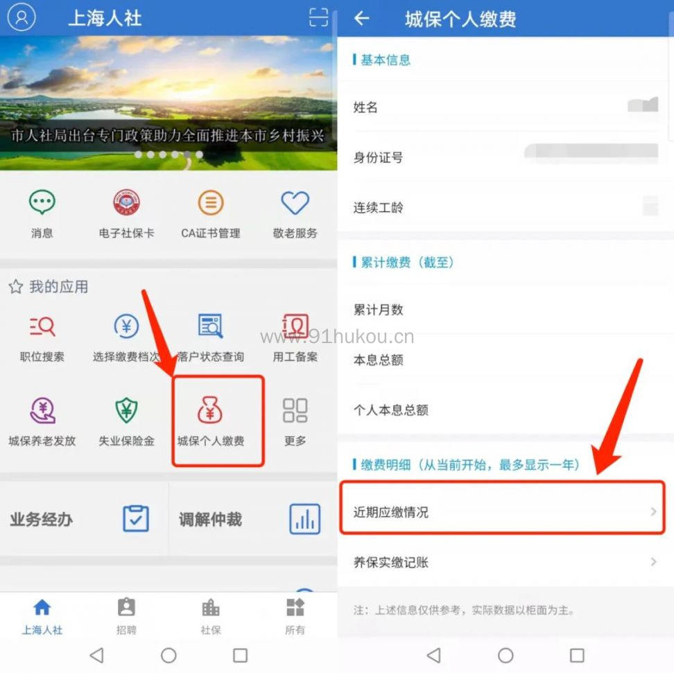 第二步:点击进入“城保个人缴费”,选择“近期应缴情况”。