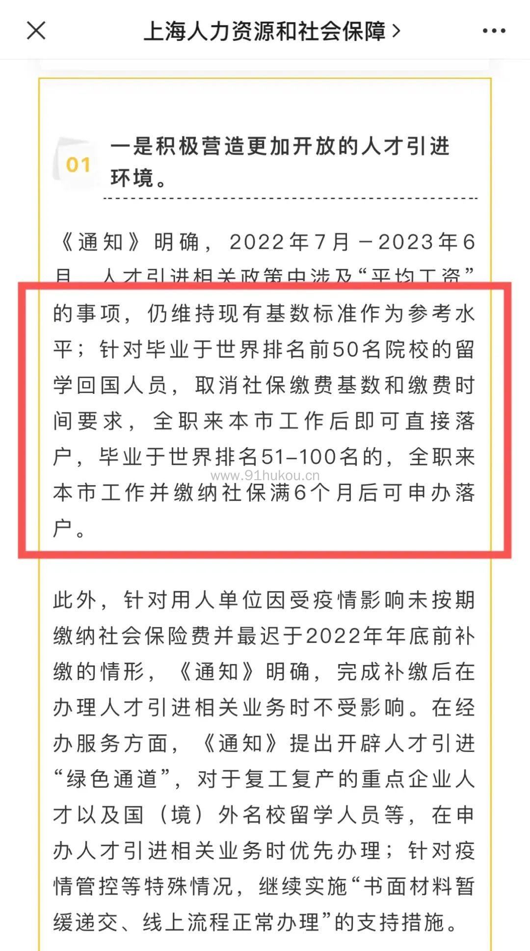 世界排名51-100名的留学生缴纳满半年社保后可申请落户!(不看基数)