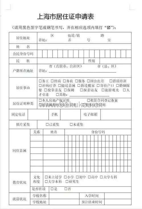 1、《上海市居住证申请表》,是由各社区事务受理中心提供,无需自己打印。插话:上海申请表长这个样子,提前留有印象